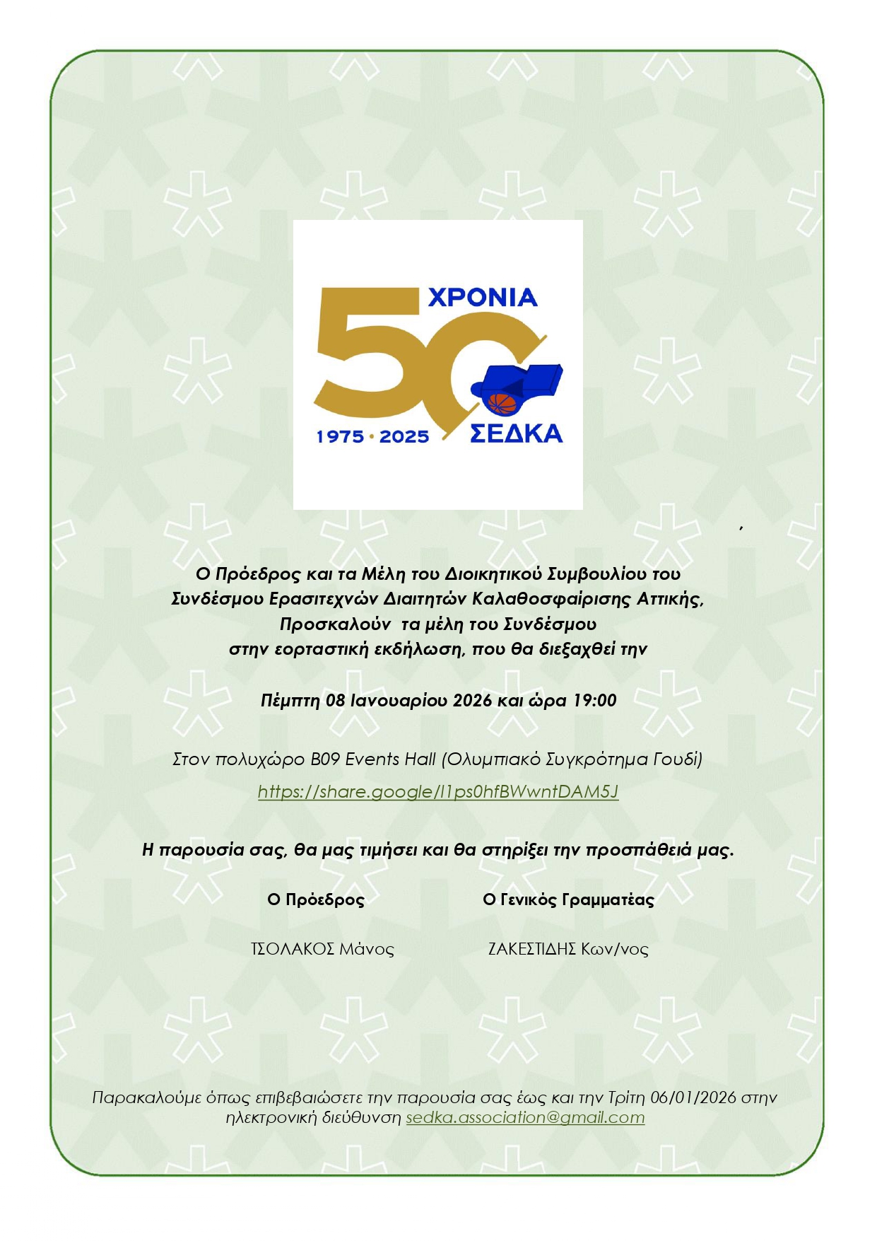 ΕΟΡΤΑΣΤΙΚΗ ΕΚΔΗΛΩΣΗ ΣΕΔΚΑ 2026. 25/12/2025 / Ανακοινώσεις, Ενημέρωση-Νέα, ΣΕΔΚΑ / ΑΝΑΚΟΙΝΩΣΗ ΣΕΔΚΑ, ΕΚΔΗΛΩΣΗ, ΣΕΔΚΑ