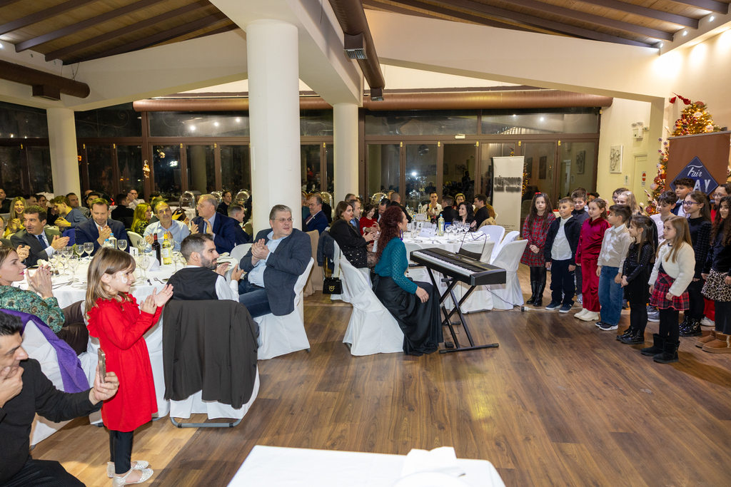 Η έναρξη της γιορτής, έγινε με την απόδοση εορταστικών τραγουδιών από την παιδική χορωδία του Σύγχρονου Ωδείου Αχαρνών.  Το Διοικητικό Συμβούλιο ευχαριστεί τον Διευθυντή του Ωδείου κ. Σωτήρη Διμπινούδη, για την ευγενική του προσφορά προς το Σύνδεσμο.