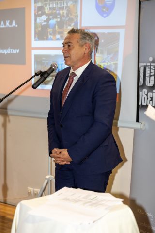 Χαιρετισμό στους παρευρισκόμενους απηύθυνε και ο πρώην Πρόεδρος του Σ.Ε.Δ.Κ.Α., μέλος του Hall of Fame και εμβληματική μορφή της ελληνικής διαιτησίας, κ. Κώστας Ρήγας.